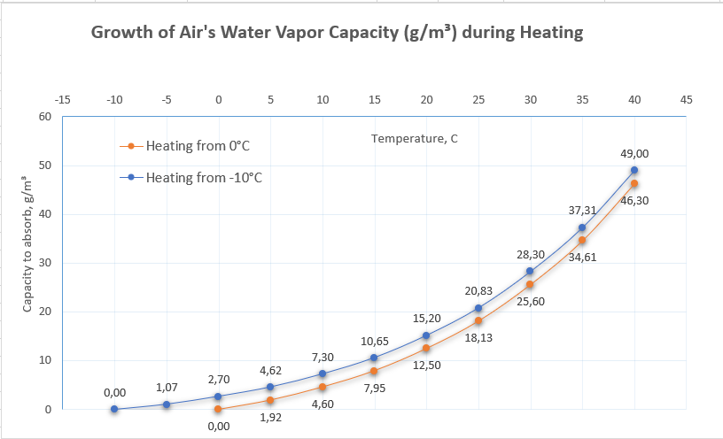 Je vais vous révéler tout de suite le principal secret, avec l'augmentation de la température de l'air, son humidité relative diminue très rapidement