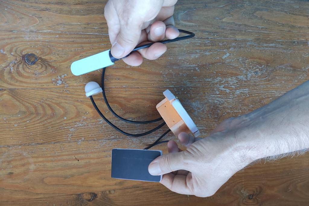 Директор регионального представительства Simbiosei монтирует WiFi датчик мониторинга микроклимата в декоративный корпус из натуральных материалов.